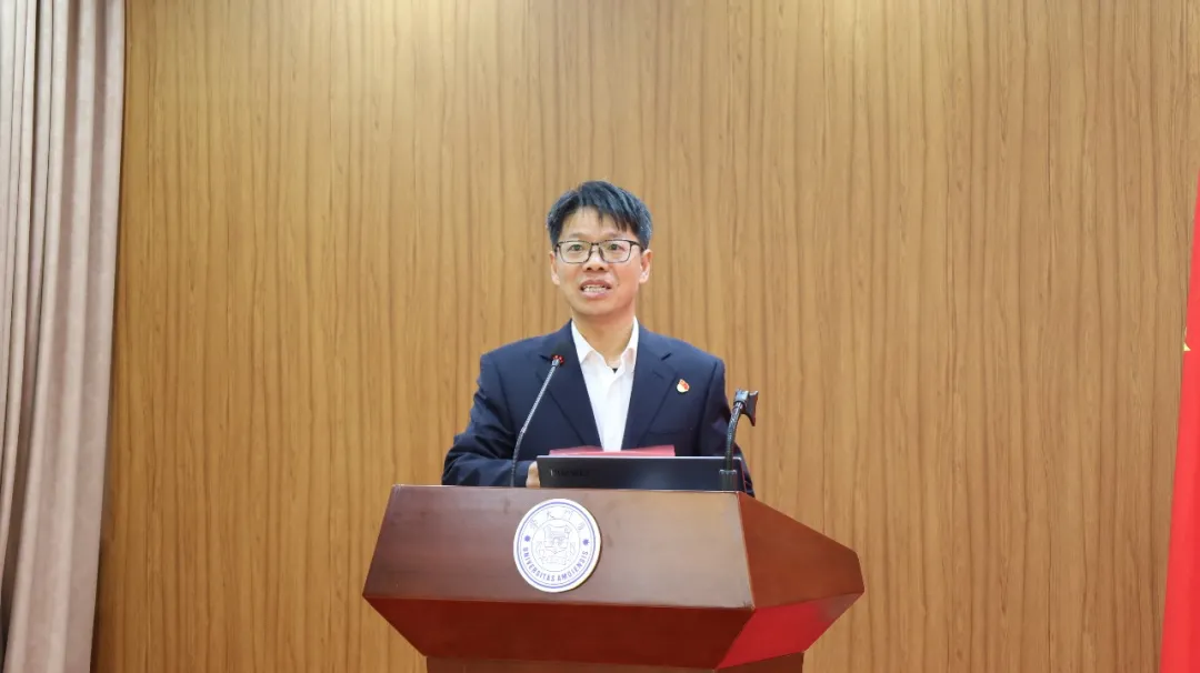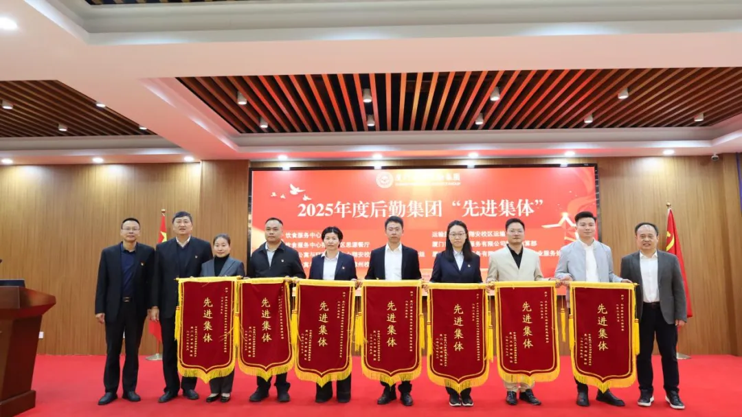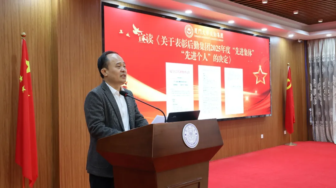 随后,集团副总经理杨建中宣读《关于表彰后勤集团2025年度“先进集体”“先进个人”的决定》。在欢快的乐曲和热烈的掌声中,与会领导为获奖集体和个人逐一进行颁奖。先进集体代表运输服务中心翔安校区运输服务部张小铁、先进个人代表质量监督管理部彭潘一凡依次发表了获奖感言。